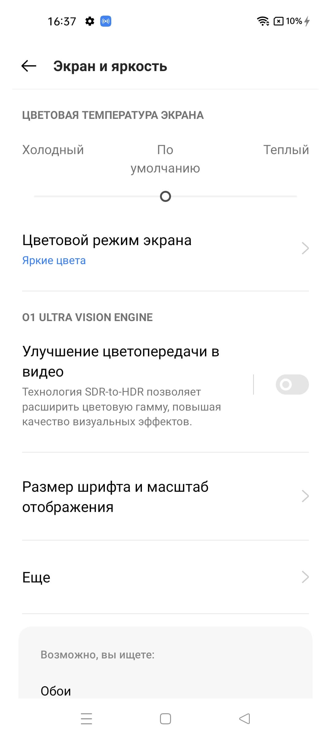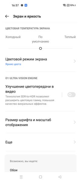 Фотография выше получена для профиля Яркие цвета в настройках экрана, который выбран по умолчанию. Профилей всего два: