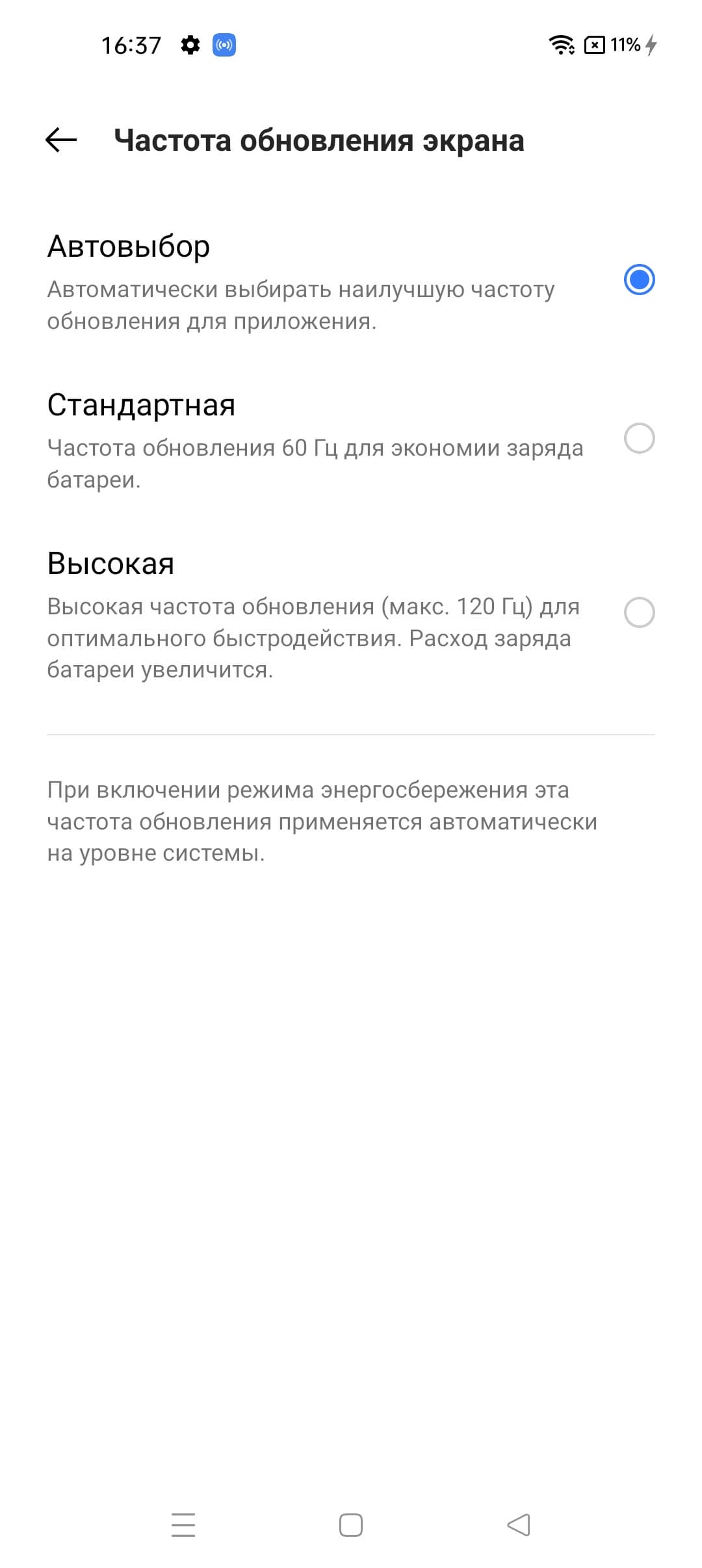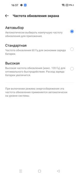Есть и настройка, позволяющая увеличить частоту обновления до 120 Гц, при такой частоте списки в меню прокручиваются плавнее.