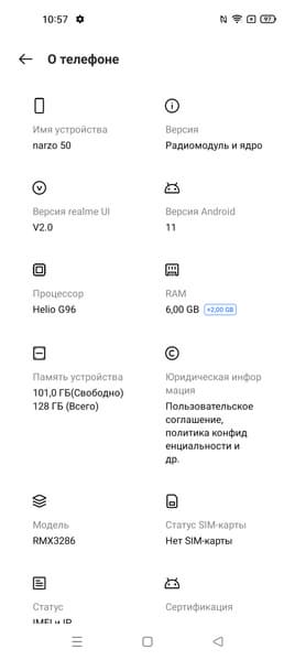 Основные характеристики Realme Narzo 50 (модель RMX3286)