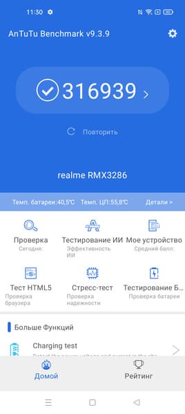 В качестве программной платформы используется ОС Android 11 с собственной оболочкой Realme UI 2.0. Это лаконичный и удобный интерфейс, где все логично расставлено и оформлено. Этим он отличается от большинства типичных китайских оболочек, в которых множество кнопок, функций и сочетаний разнообразных действий, которые европейцу запоминать лень. Здесь же даже нет даже разделения верхней шторки на две части — она одна, полноценная. В интерфейсе нет никакой навязчивой рекламы, всплывающей или встроенной, нет и ненужной прослойки в виде «псевдоустановщика», как у Xiaomi. На месте официальный магазин приложений Google Play и сервисы Google.