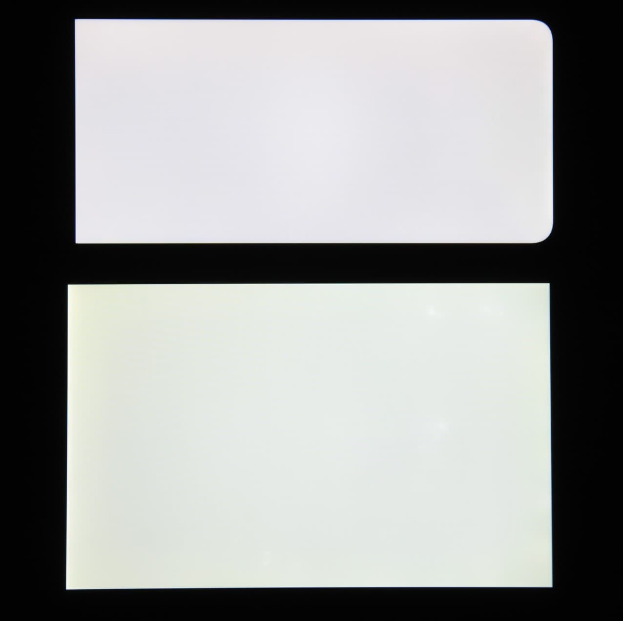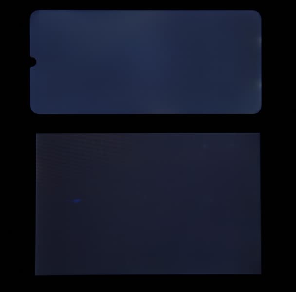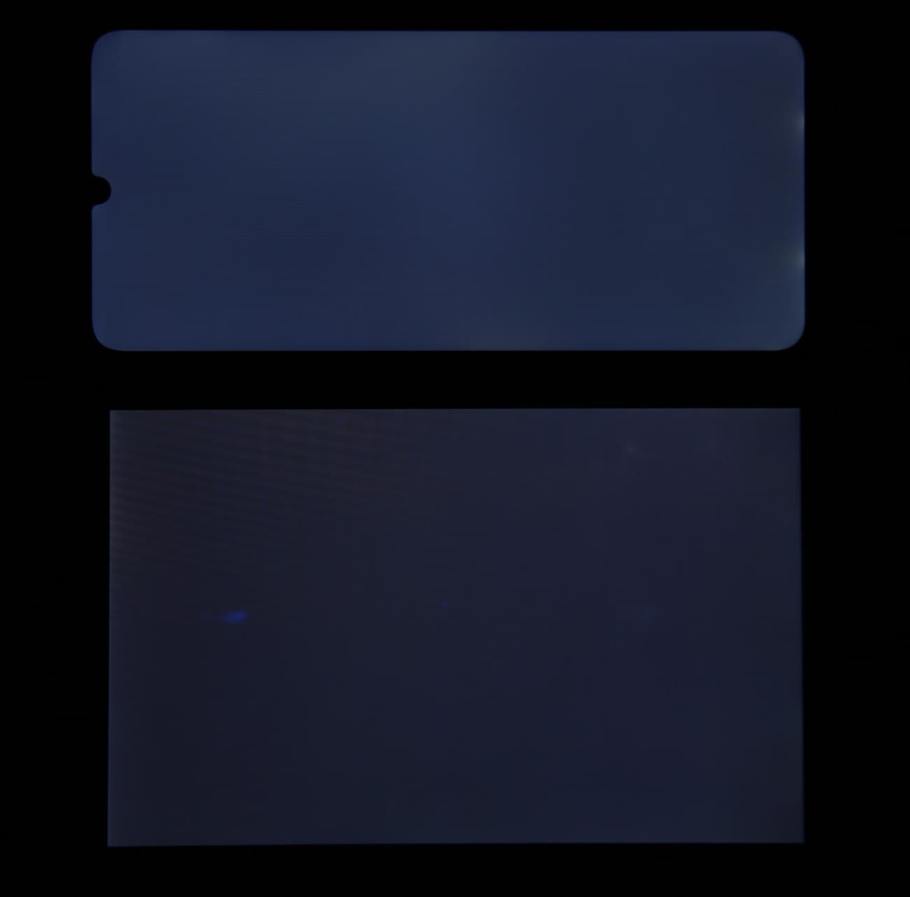 При перпендикулярном взгляде равномерность черного поля средняя (для наглядности яркость подсветки на смартфоне установлена на максимум):