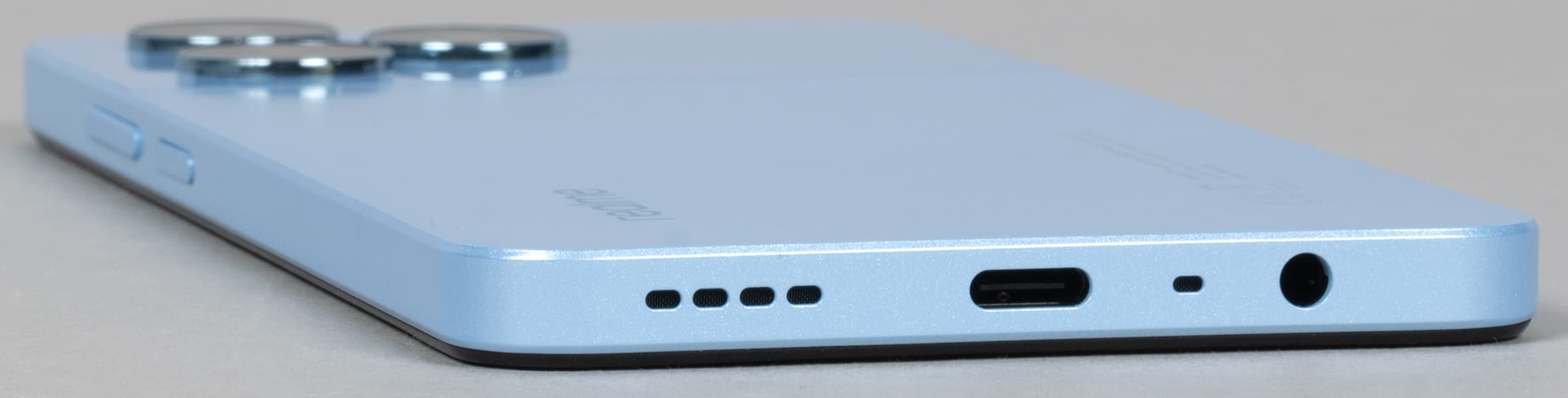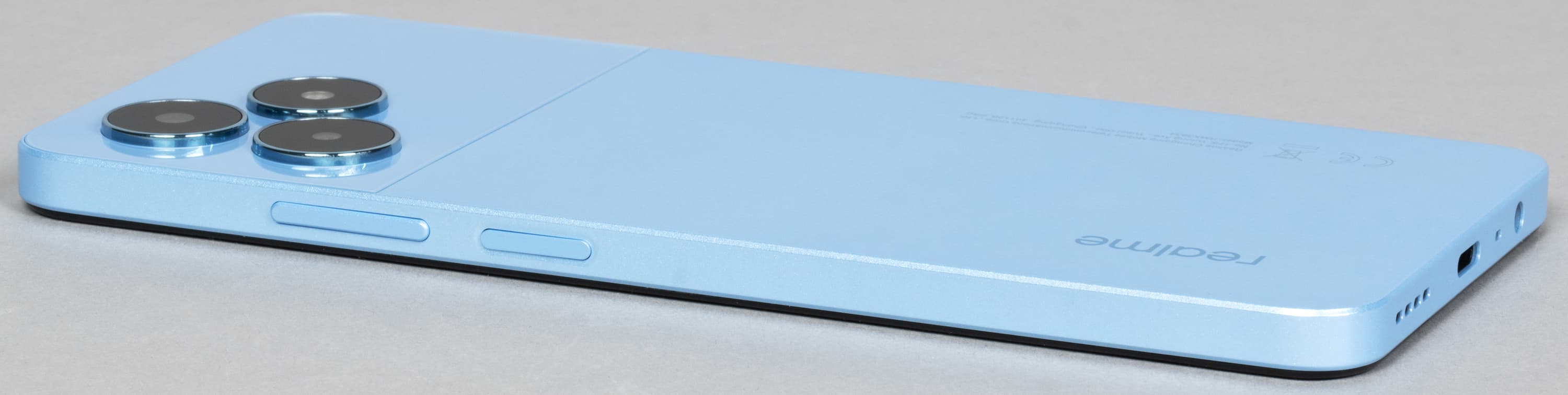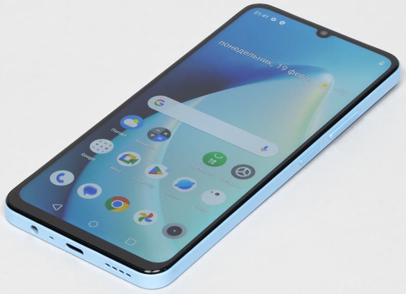 Realme Note 50 — это недорогой молодежный смартфон, который по дизайну вполне соответствует своему ценовому уровню. Материал корпуса — матовый пластик, самый обыкновенный, с легкой «искринкой», совершенно не пытающийся походить на стекло или металл. В руке смартфон лежит надежно, но отпечатки на поверхности всё равно остаются заметны.