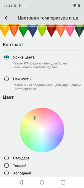 Фотография выше получена при активном профиле Нежность в настройках экрана, всего их два: