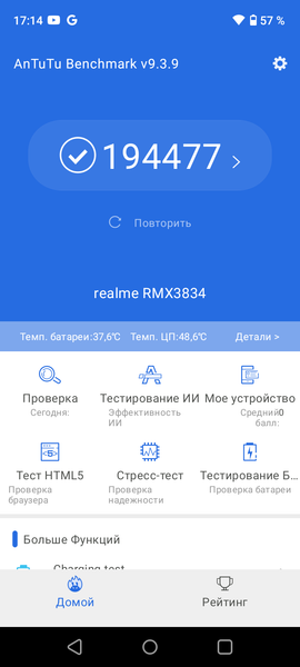 Тестирование в комплексных тестах AnTuTu и GeekBench: