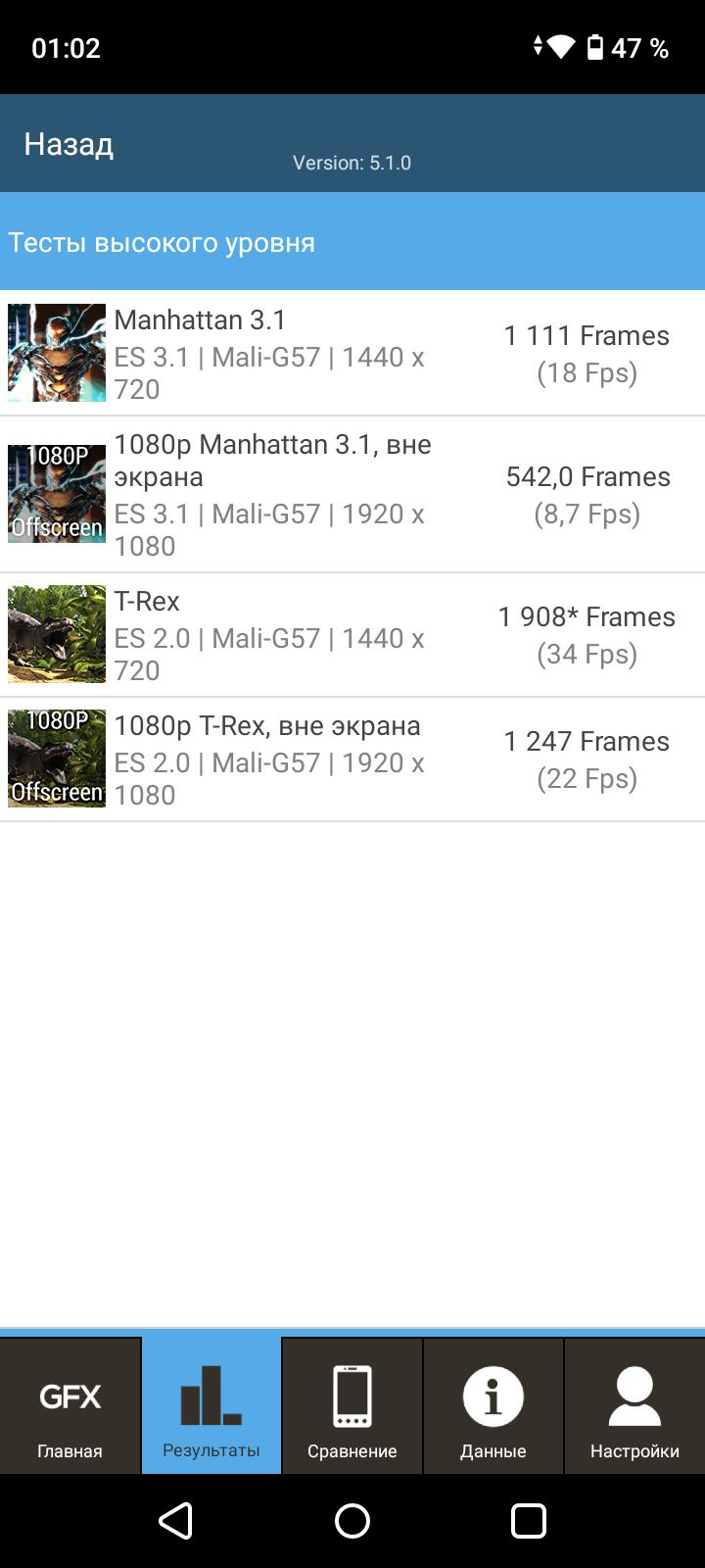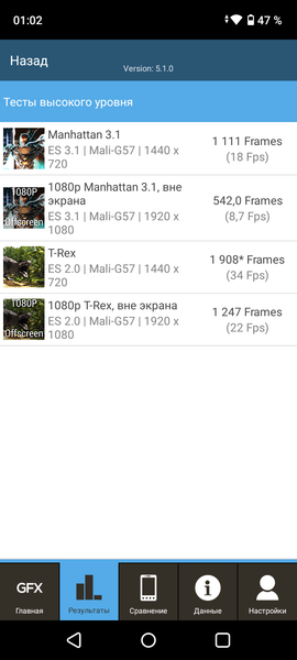 | GFXBenchmark T-Rex (1080p Offscreen, fps) | 22 | 41 | 64 | 45 | 69 |