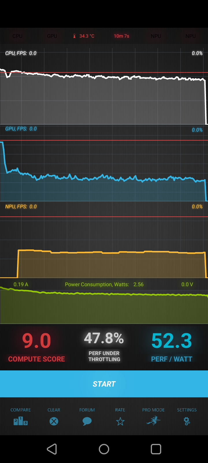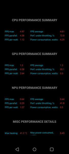Тест на снижение производительности при нагреве мы проводим с помощью программы Burnout Benchmark, которая позволяет нагружать CPU, GPU и NPU: