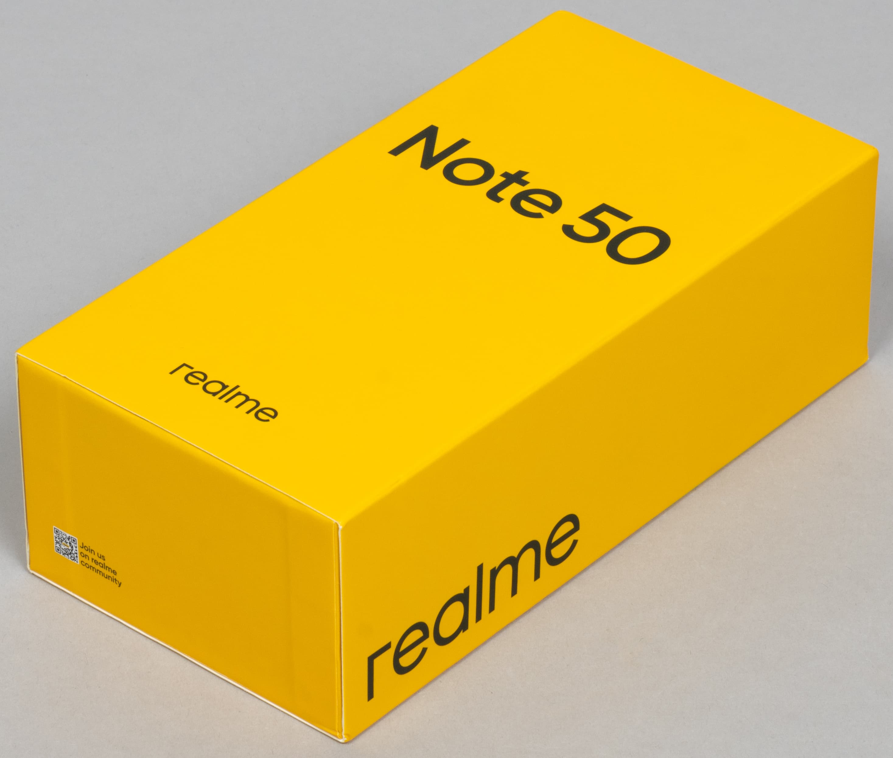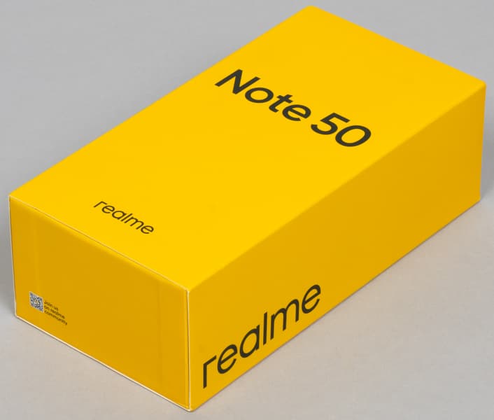 Смартфон Realme Note 50 поставляется в привычно оформленной картонной коробке, только здесь сэкономили на полноценной картонной крышке, а то, что вы видите на фотографии — это лишь тонкая «суперобложка».