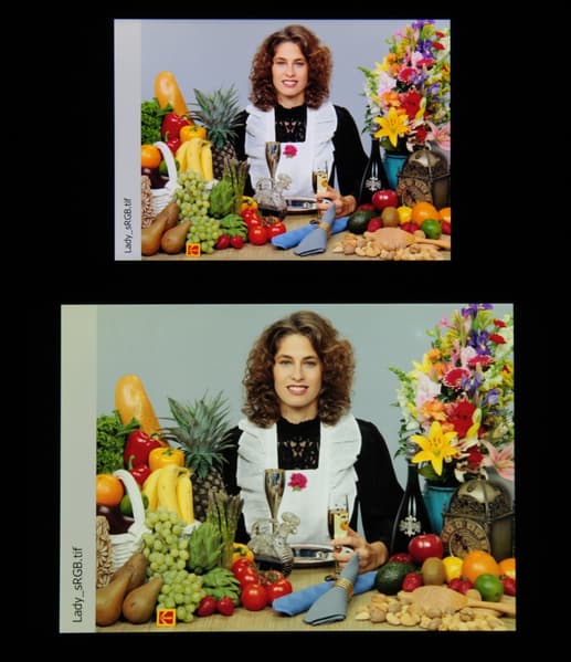 Отметим, что на экранах с широким цветовым охватом (без соответствующей коррекции) цвета́ обычных изображений, оптимизированных для устройств sRGB, выглядят неестественно насыщенными. Отсюда и рекомендация: в большинстве случаев смотреть кино, фотографии и все естественное лучше при выборе профиля Нежность, в котором хотя бы нет увеличения цветового контраста.