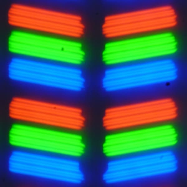 В данном смартфоне используется матрица типа IPS. Микрофотографии демонстрируют типичную для IPS структуру субпикселей: