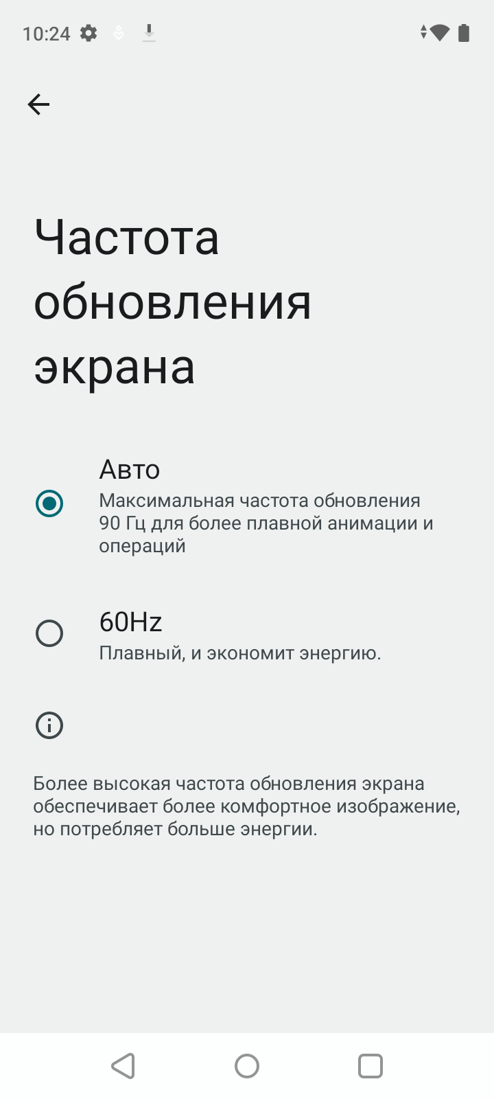 В настройках экрана можно включить режим с повышенной до 90 Гц частотой обновления: