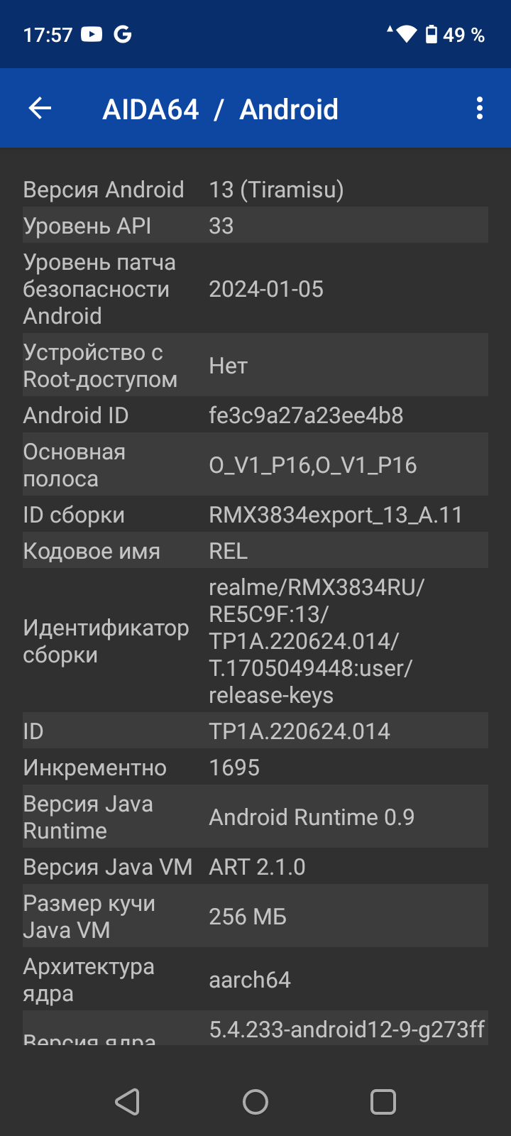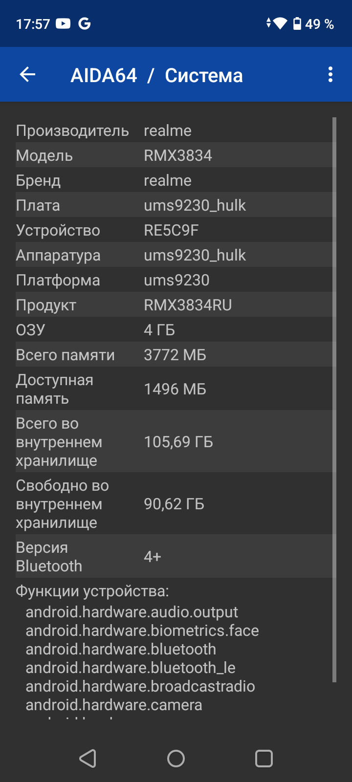 - Операционная система Android 13, Realme UI