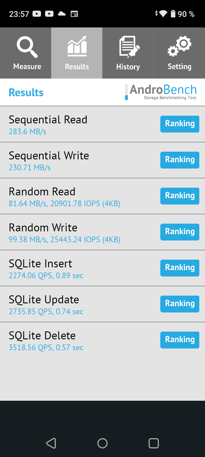 Результаты теста AndroBench на скорость работы с памятью: