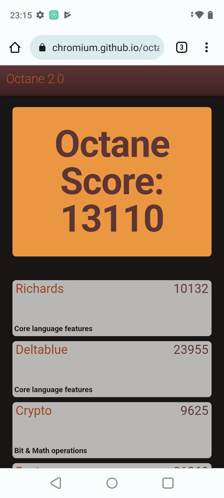 | Google Octane 2 (больше — лучше) | 13110 | 14930 | 23502 | 13726 | 19194 |