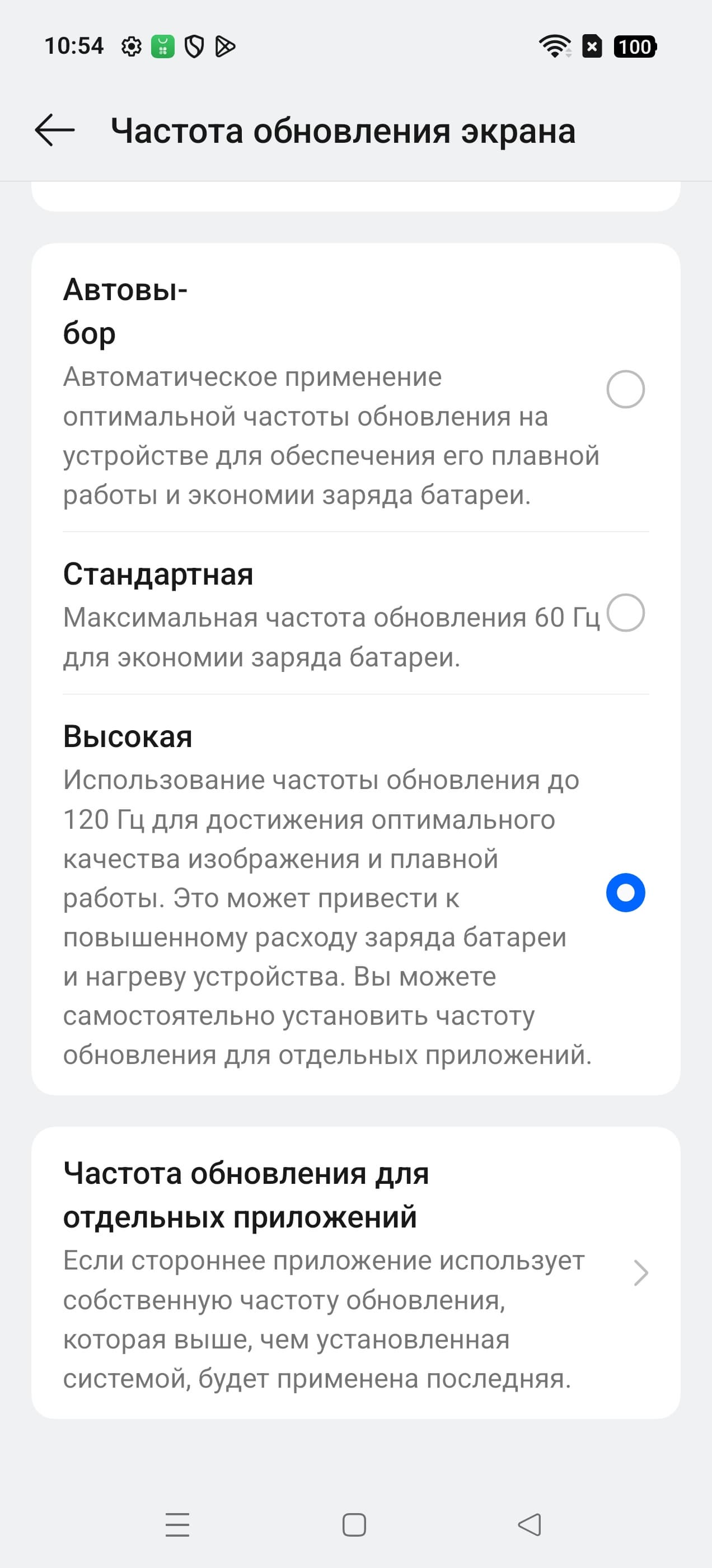 В настройках экрана можно включить режим с повышенной до 120 Гц частотой обновления: