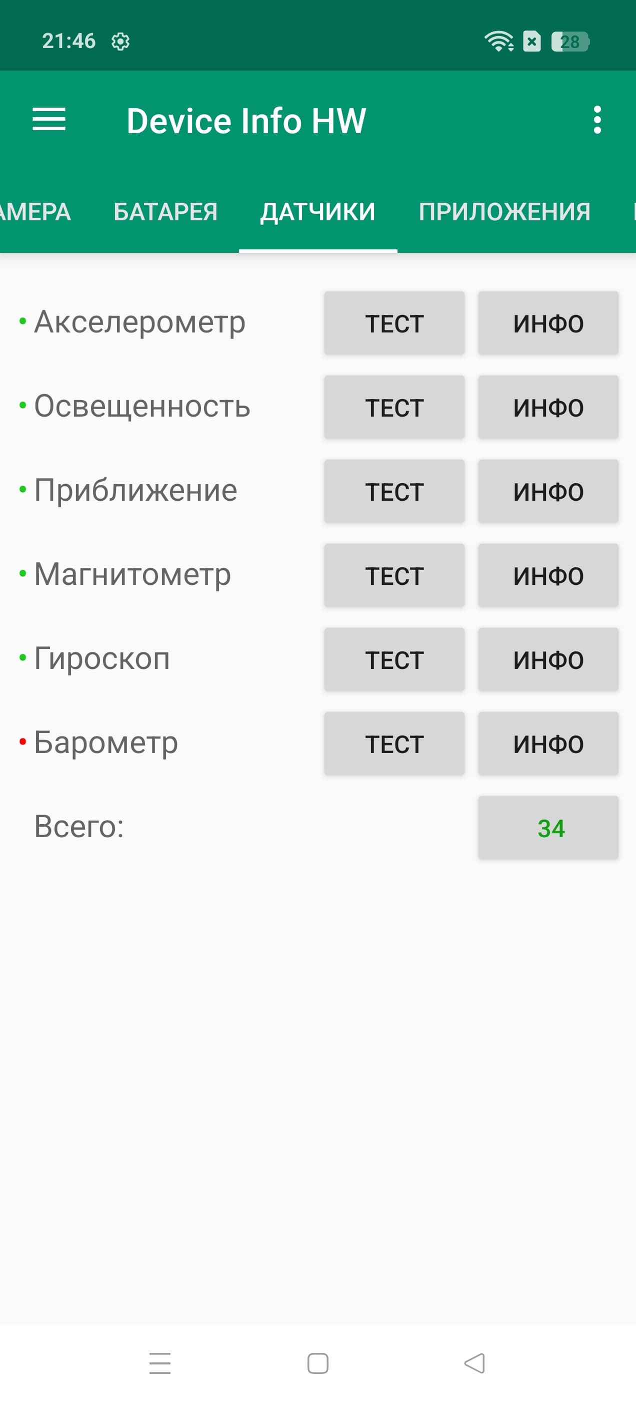 - Датчики приближения и освещения, магнитного поля, акселерометр, гироскоп