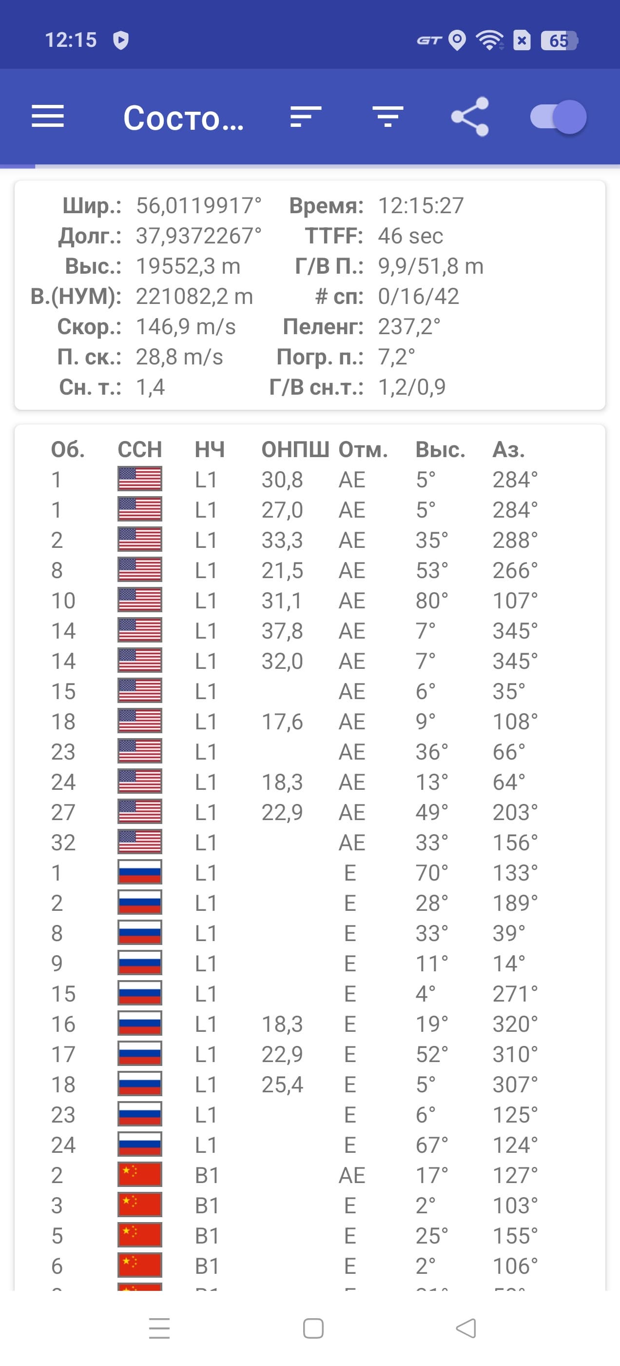 Для смартфона заявлен двухканальный приемник GPS (как минимум), однако специализированный тест подтвердил работу лишь в одноканальном режиме. Также он работает с Глонасс, BDS и Galileo. Первые спутники при холодном старте обнаруживаются небыстро, точность позиционирования не вызывает претензий.