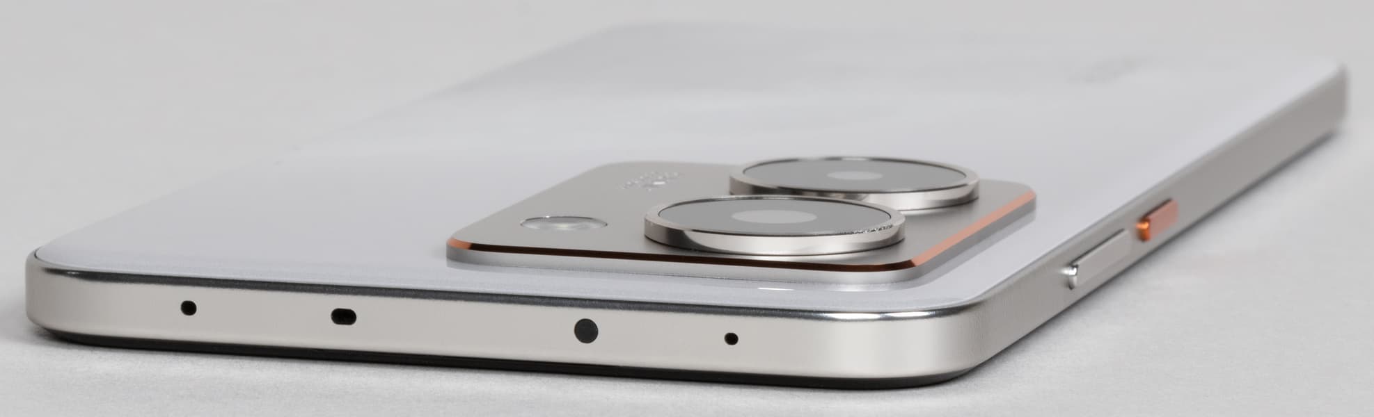Верхний торец содержит отверстия дополнительных микрофона и динамика. Однако динамики для стереозвука не равнозначны: верхний не такой мощный, как нижний, так что совместное их звучание не такое объемное и насыщенное, как хотелось бы. Уровень громкости, тем не менее, вполне достаточный. Здесь же находится и глазок ИК-порта.