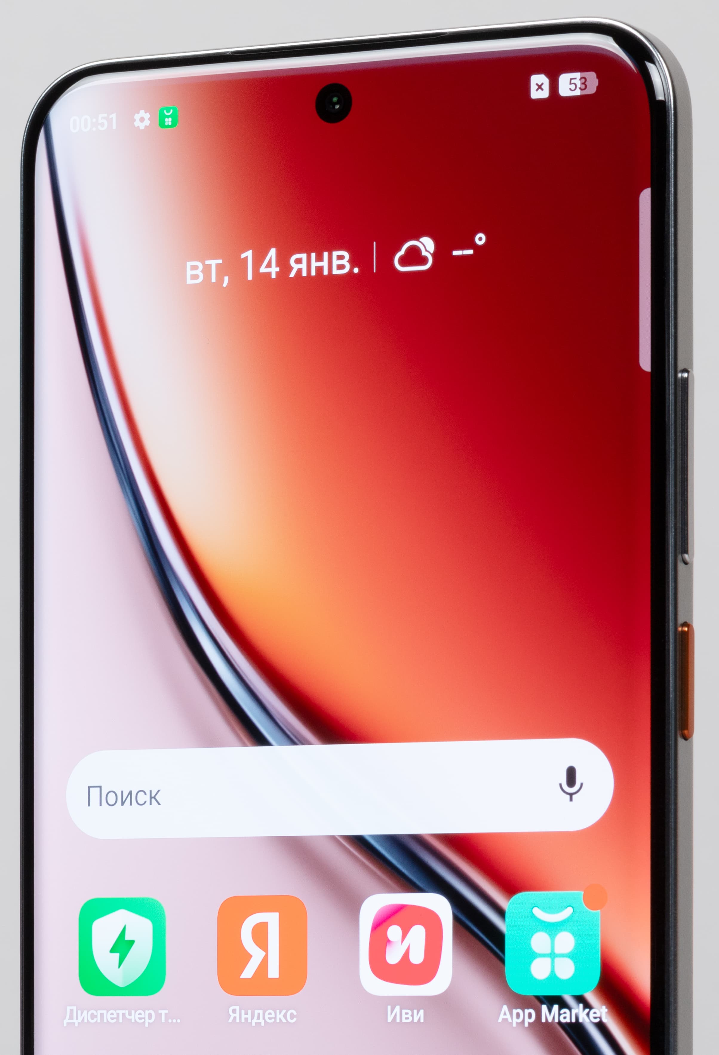 Отдельно отметим, что с точки зрения качества изображения, от загнутых краев только вред, так как эта дизайнерская находка вносит искажения цветового тона и уменьшает яркость на краях картинки, а в условиях внешней освещенности приводит к неизбежным бликам вдоль хотя бы одной стороны экрана. Хорошо, что в данном случае загнутые края лишь совсем чуть-чуть заходят на область отображения.
