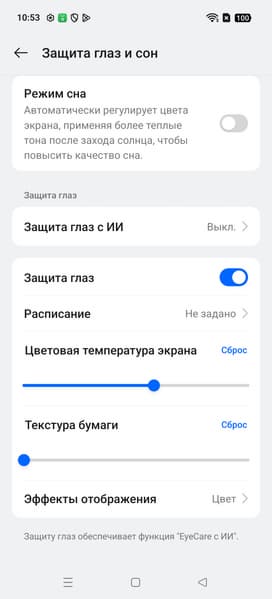 Также в настройках можно уменьшить интенсивность синей компоненты.
