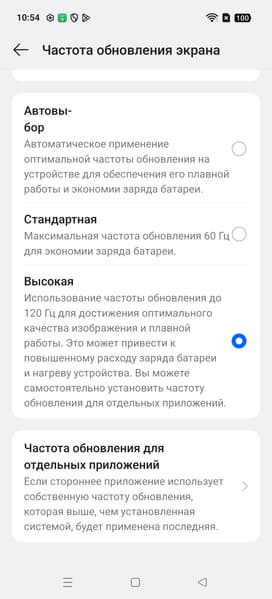 По факту режим всегда динамичный, и если не касаться экрана, то частота обновления может снижаться до 60 Гц (по данным мониторинга). Данной настройкой пользователь ограничивает только максимальную частоту обновления.