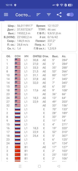 - GPS (L1+L5), Глонасс, BDS, Galileo