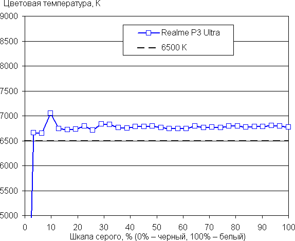 (Самые темные области шкалы серого в большинстве случаев можно не учитывать, так как там баланс цветов не имеет большого значения, да и погрешность измерений цветовых характеристик на низкой яркости высокая.)