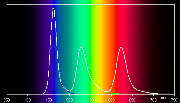 В первом случае спектры компонент (то есть спектры чистых красного, зеленого и синего цветов) очень хорошо разделены: