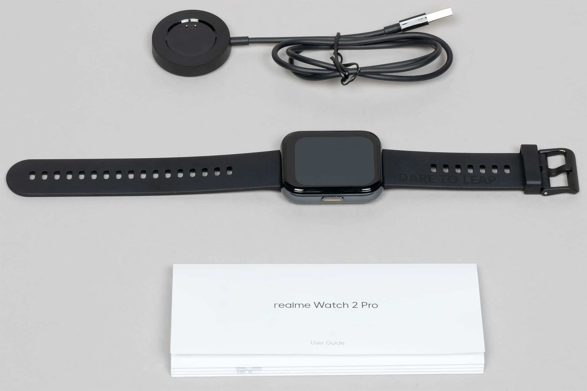 Комплектация минималистична и идентична предшественникам: помимо самих часов — только руководство пользователя (на трех языках — английском, русском и украинском) и зарядное устройство в виде платформы, на которую сверху кладутся часы. USB-кабель у зарядки неотсоединяемый.