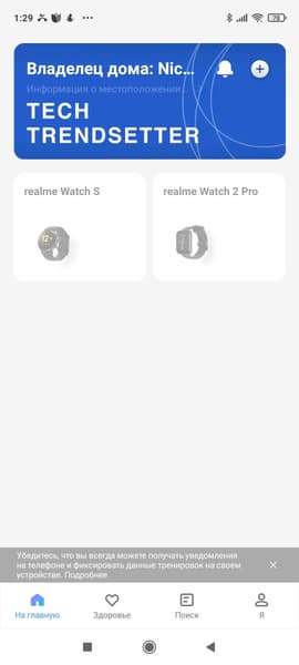 Еще более странно — увидеть на экране «На главную», что модели Realme Watch 2 Pro там попросту нет (см скриншот выше). В итоге получается парадоксальная ситуация: часы соединены со смартфоном, но приложение видит это соединение лишь частично. Вы, например, без проблем можете управлять камерой и воспроизведением музыки на iPhone, но передать результаты замера кислорода, например, не можете.