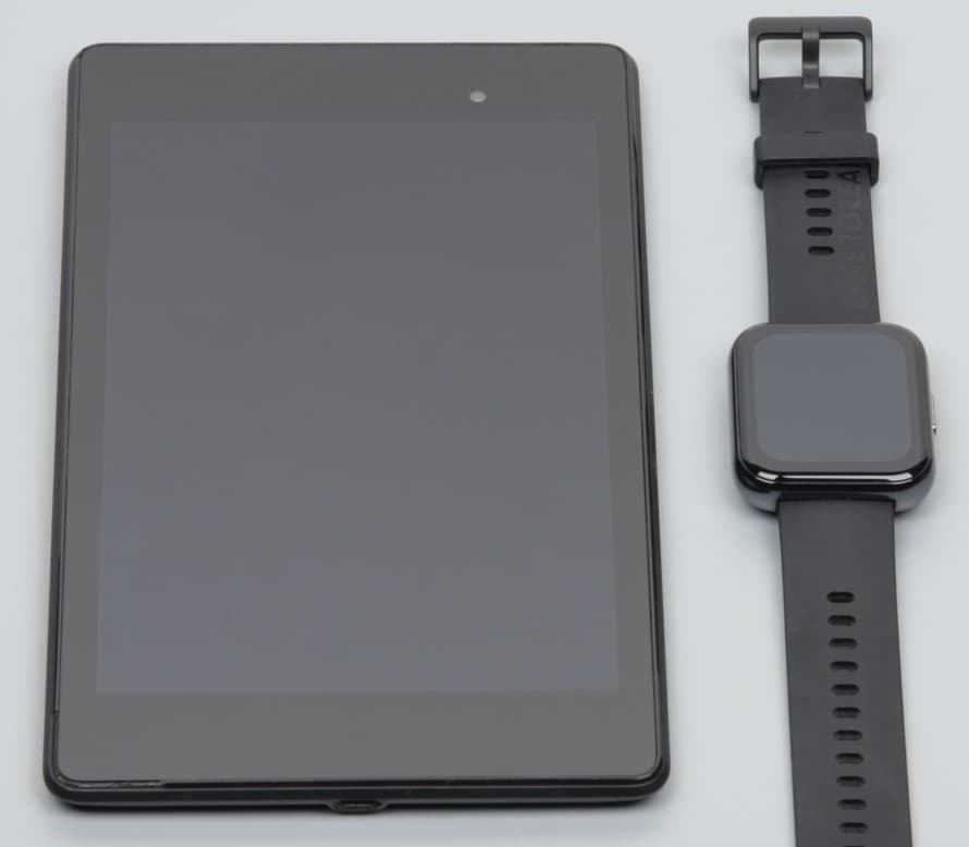 Экран у часов лишь немного светлее (яркость по фотографиям 111 против 109 у Nexus 7). Двоение отражения слабое, это свидетельствует о том, что между слоями экрана нет воздушного промежутка. Внешняя поверхность экрана часов обладает выраженными олеофобными (жироотталкивающими) свойствами (которые заметно лучше, чем у Nexus 7), поэтому следы от пальцев удаляются существенно легче, а появляются с меньшей скоростью, чем в случае обычного стекла. Вывести произвольное изображение на экран часов возможности нет, поэтому пришлось тестировать экран в режиме фонарика, то есть при выводе белого поля во весь экран на двух уровнях яркости. Максимальная яркость достигла значения 640 кд/м². С учетом хороших антибликовых свойств это позволит разглядеть изображение на экране часов в условиях сильной засветки (ясный день на улице).