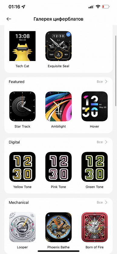 Также можно загрузить в часы альтернативные бесплатные циферблаты. На момент тестирования их было чуть больше полусотни. Загружаются они довольно долго, минуту или около того. Но зато на самих часах вы можете легко переключаться между предустановленными и новыми циферблатами. Достаточно сделать долгое нажатие на главном экране.