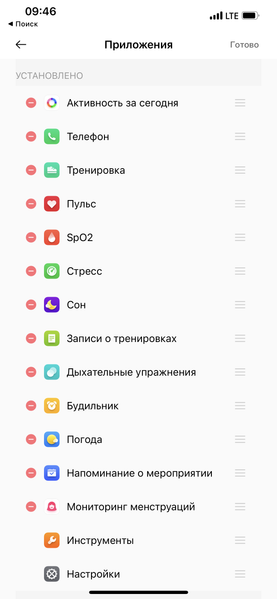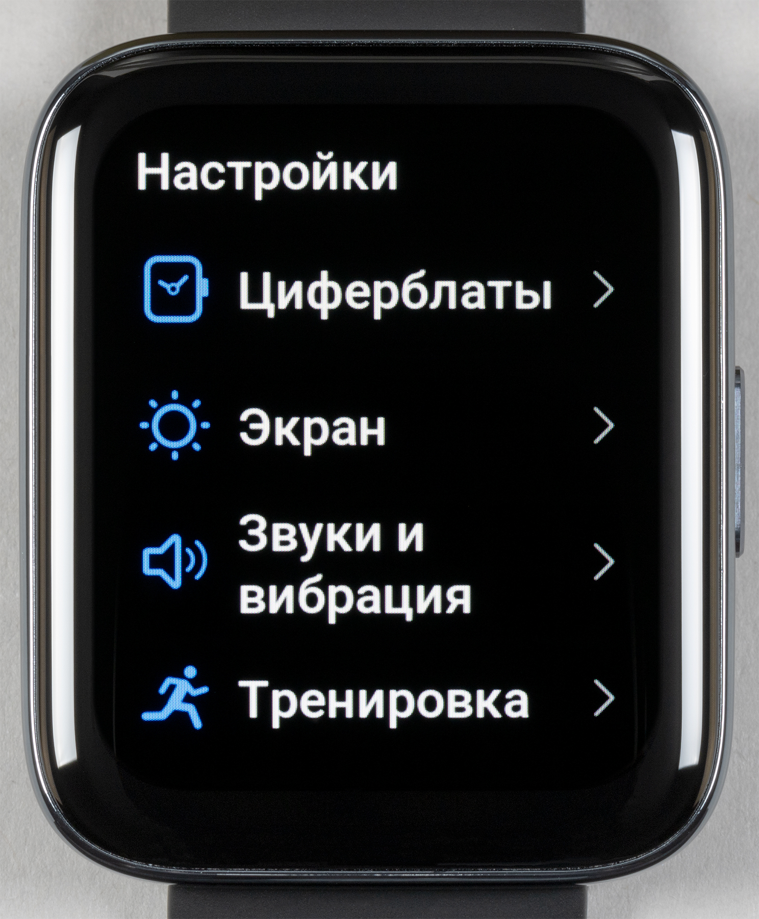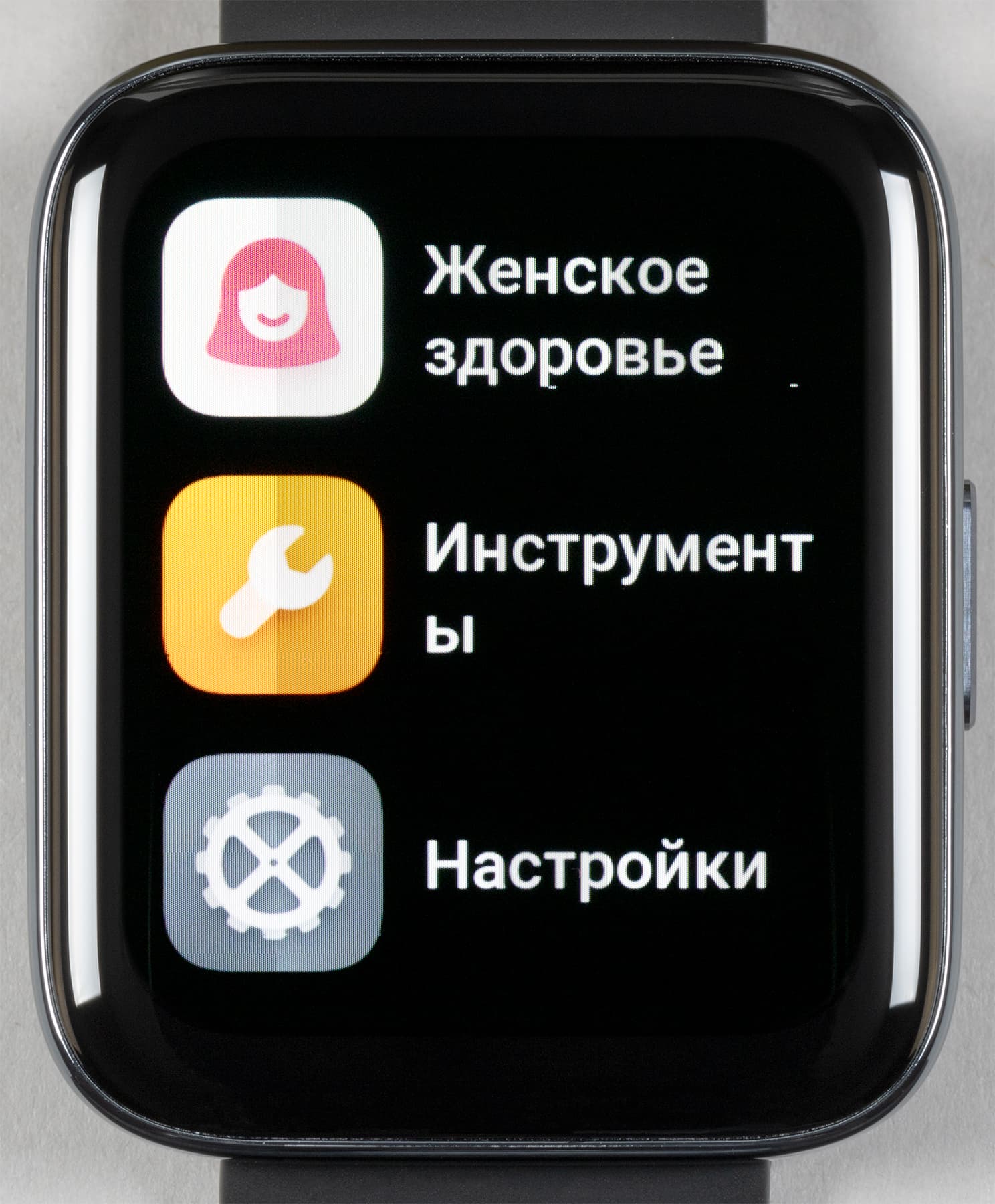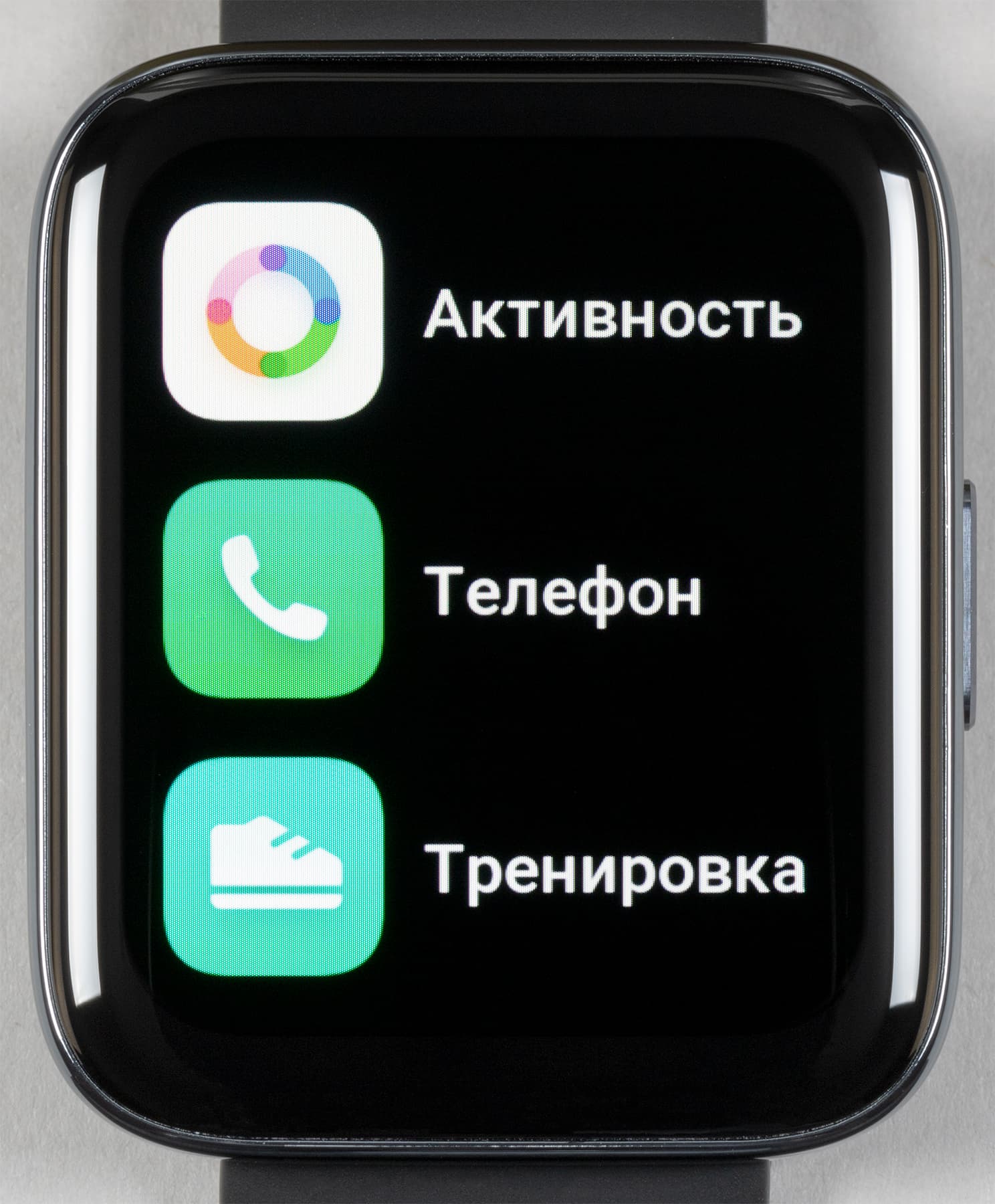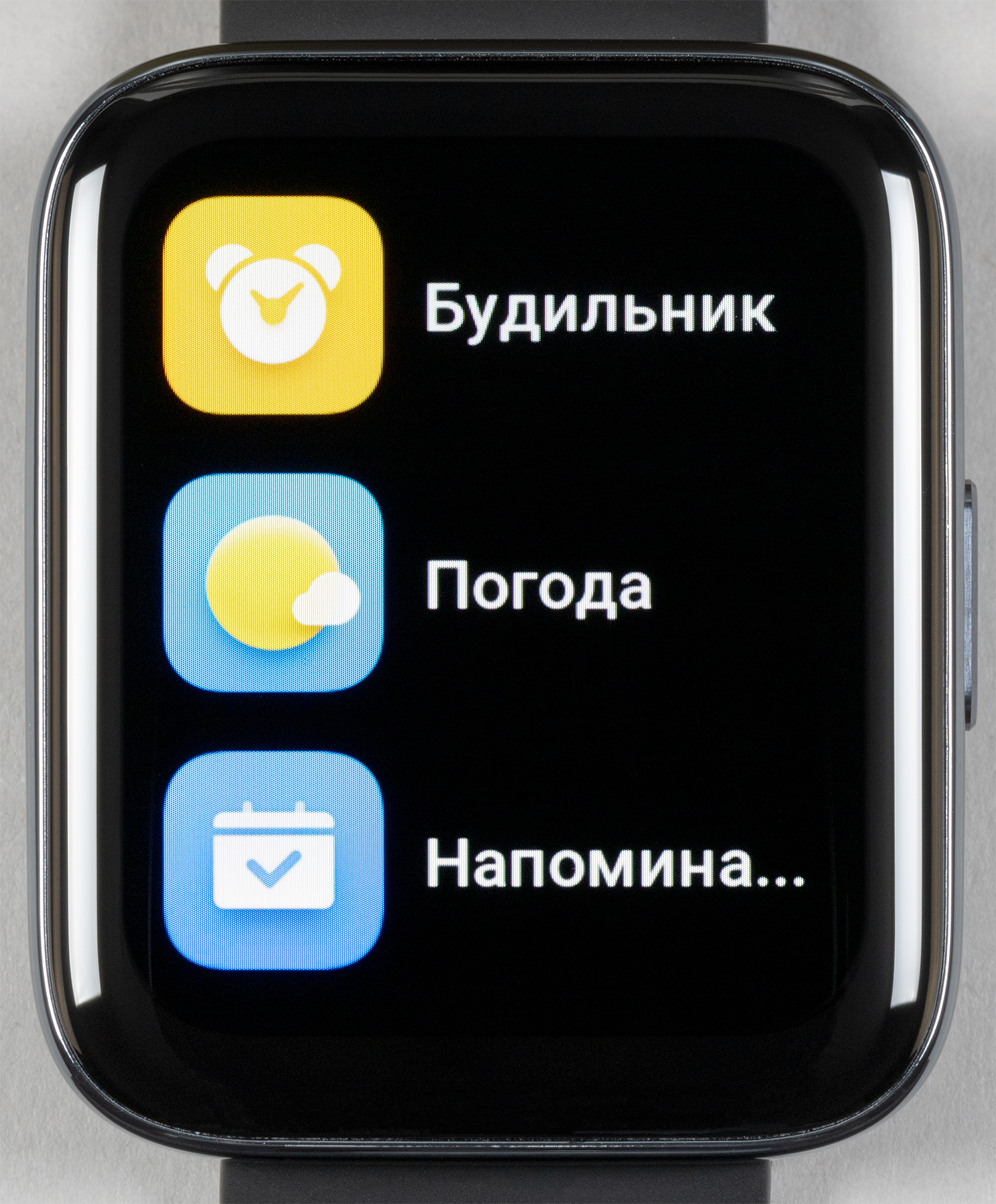 Набор возможностей, в целом, традиционен для подобного класса устройств и не сильно отличается от того, что мы видели у Realme Watch 2 Pro. Главное новшество — возможность принимать и совершать телефонные звонки на часах. На скриншоте ниже — полный список доступных приложений.