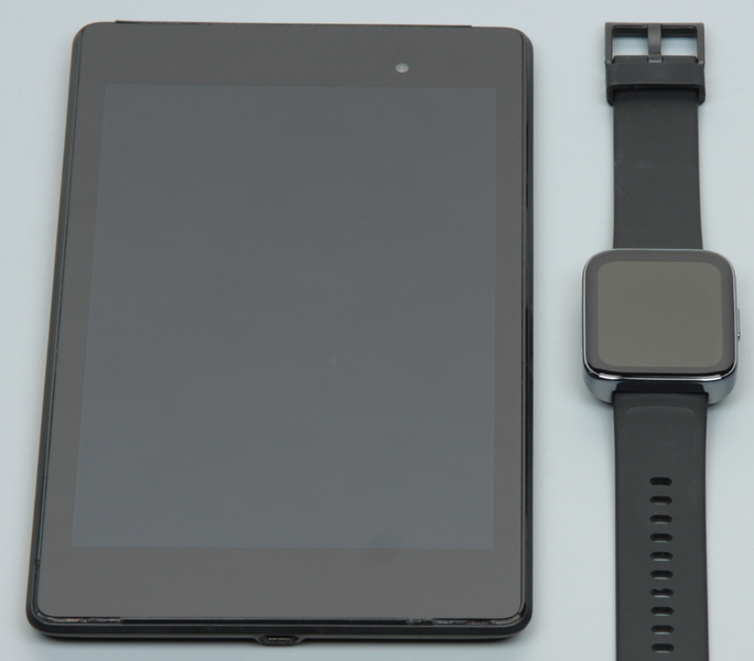 Экран у часов лишь немного светлее (яркость по фотографиям 106 против 102 у Nexus 7). Двоение отражения слабое, это свидетельствует о том, что между слоями экрана нет воздушного промежутка. Внешняя поверхность экрана часов обладает выраженными олеофобными (жироотталкивающими) свойствами (которые заметно лучше, чем у Nexus 7), поэтому следы от пальцев удаляются существенно легче, а появляются с меньшей скоростью, чем в случае обычного стекла. Вывести произвольное изображение на экран часов возможности нет, поэтому пришлось тестировать экран в режиме фонарика, то есть при выводе белого поля во весь экран на двух уровнях яркости. На первом уровне – 300 кд/м², а максимальная яркость достигла значения 490 кд/м². С учетом хороших антибликовых свойств это позволит разглядеть изображение на экране часов в условиях сильной засветки (ясный день на улице).