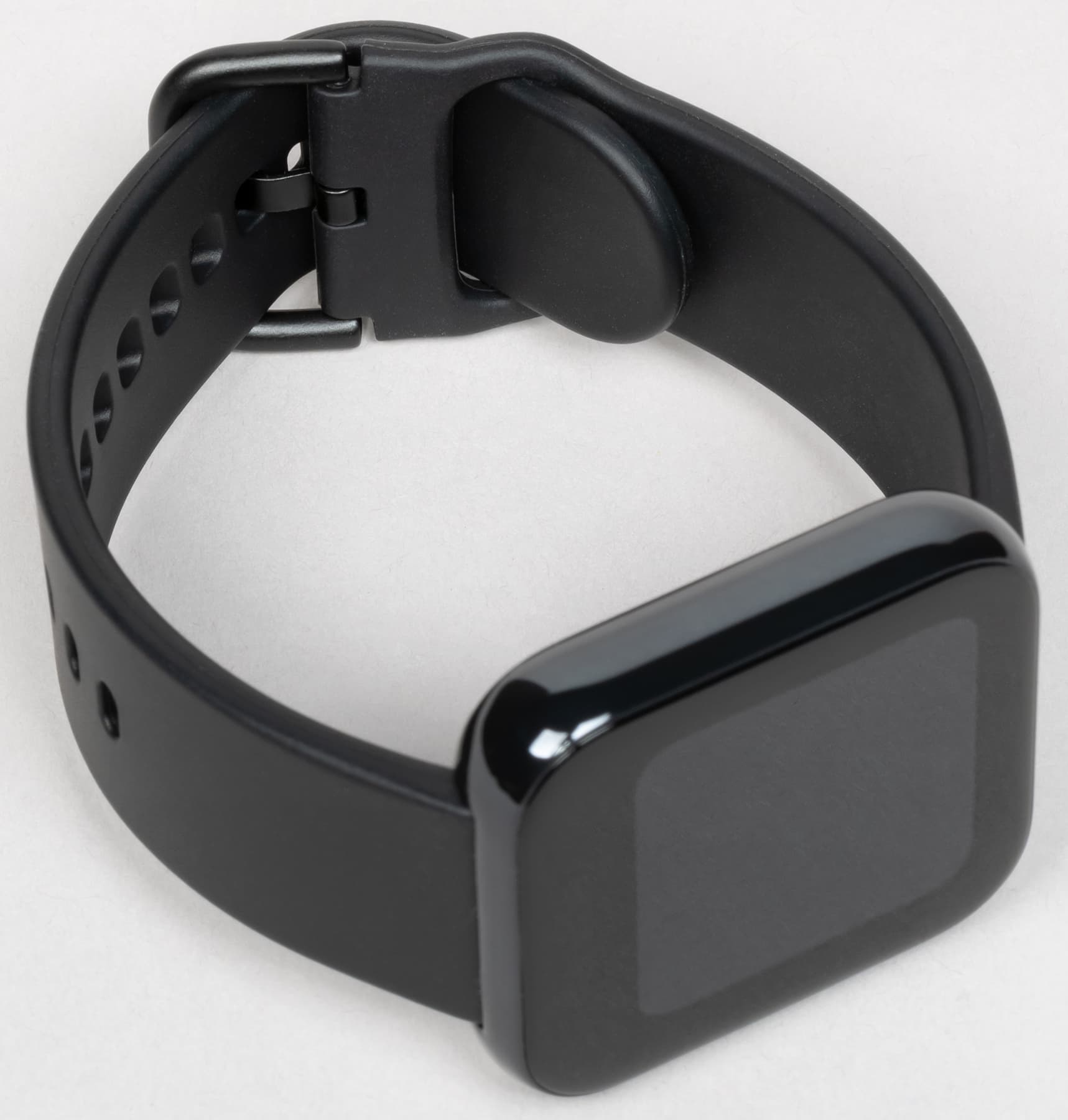 Половинки силиконового ремешка присоединены к часам с помощью металлических стерженьков, так что их вполне можно снять. Что касается самого ремешка — у нас на тестировании был черный вариант, и в плане сочетаемости с корпусом это хороший выбор. Но материал не так хорош, как, например, у тех же Apple Watch (там, правда, стоимость одного ремешка ненамного меньше, чем просят за часы Realme). Он довольно туго надевается и в целом выглядит простовато. Правда, у нас был тестовый сэмпл, а в продаже есть ремешок с застежкой иного типа (флип). Следовательно, и сам материал тоже может быть немного иным.