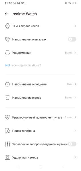 Разумеется, часы могут отображать уведомления из разных сервисов, причем корректно работают с кириллицей, латиницей и всеми стандартными символами. На входящий звонок ответить нельзя, потому что нет динамика и микрофона, но можно отклонить вызов или отключить с часов звук телефона. Также есть управление воспроизведением музыки и напоминания о необходимости физической активности и потребления воды. А вот управление камерой смартфона у нас не заработало (мы тестировали часы в связке с телефоном Samsung Galaxy A10).