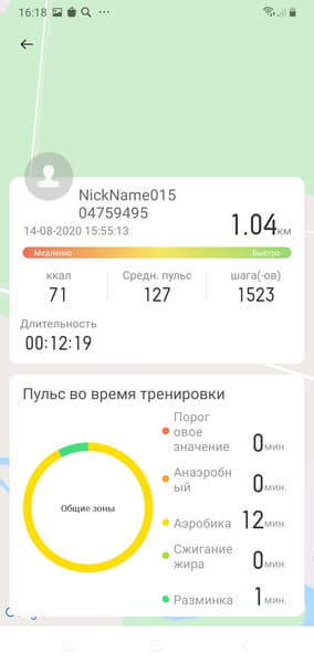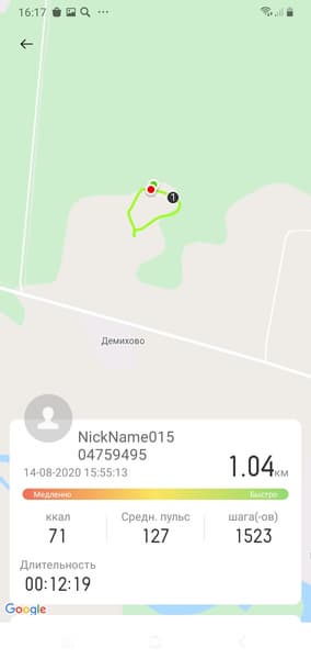 Ходьба же возможна и без смартфона — видимо, часы определяют расстояние по количеству шагов, что вполне допустимо, хотя и не очень точно. Зато если все-таки взять смартфон, то можно увидеть не только всю статистику, но и маршрут на карте (Google).