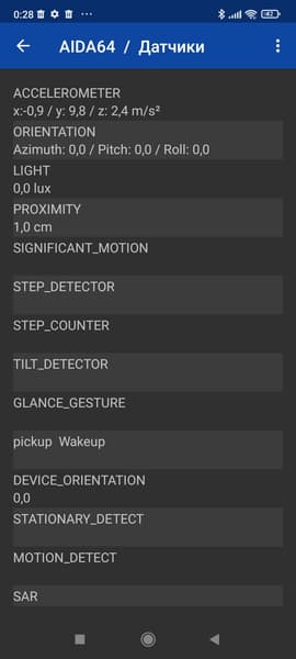 - Датчики приближения и освещения, акселерометр