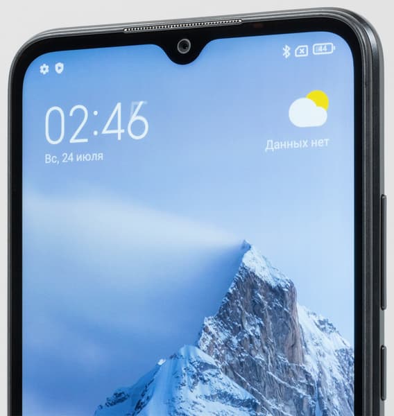 Фронтальная камера установлена в старомодном каплевидном вырезе в экране, который теперь можно встретить лишь в самом бюджетном сегменте. Светодиодный индикатор событий отсутствует.