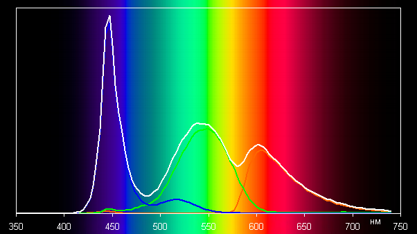 Спектры показывают, что светофильтры матрицы в умеренной степени подмешивают компоненты друг к другу: