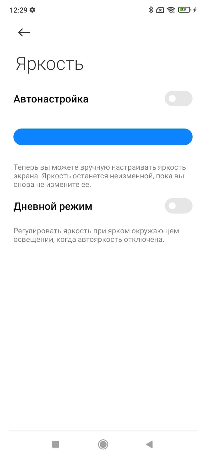 В автоматическом режиме на очень ярком свету яркость повышается до 450 кд/м², что уже лучше. Максимальная яркость высокая, и, учитывая отличные антибликовые свойства, читаемость экрана днем на солнце должна быть на хорошем уровне. Минимальное значение яркости — 3 кд/м², поэтому в полной темноте яркость можно понизить до комфортного значения. В наличии автоматическая регулировка яркости по датчику освещенности (он находится справа от решетки фронтального громкоговорителя, очень близко к верхнему краю фронтальной панели). В автоматическом режиме при изменении внешних условий освещенности яркость экрана как повышается, так и понижается. Работа этой функции зависит от положения ползунка регулировки яркости: им пользователь может попытаться выставить желаемый уровень яркости в текущих условиях. Если не вмешиваться, то в полной темноте функция автояркости уменьшает яркость до 4 кд/м² (низковато), в условиях освещенного искусственным светом офиса (примерно 550 лк) устанавливает на 120-130 кд/м² (нормально), а условно на прямом солнечном свету яркость достигает 450 кд/м² (максимум и ожидалось). Мы немного увеличили яркость в полной темноте и для трех указанных выше условий получили 10, 130 и 450 кд/м², такой результат нас устроил. Получается, что функция автоподстройки яркости работает адекватно и позволяет пользователю настраивать свою работу под индивидуальные требования. На любом уровне яркости значимая модуляция подсветки отсутствует, поэтому нет и никакого мерцания экрана.