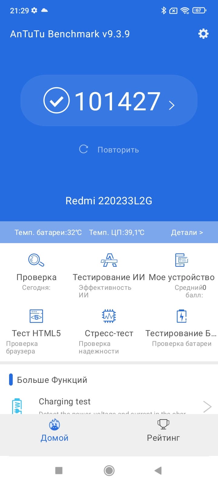 | AnTuTu (v9.x) (больше — лучше) | 101427 | 103118 | 196957 | 119516 | 119516 |