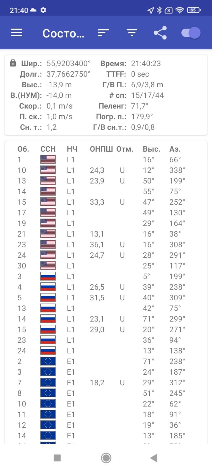 Навигационный модуль работает с GPS (с A-GPS), Глонасс, Galileo и BDS. Первые спутники при холодном старте обнаруживаются быстро, точность позиционирования вполне удовлетворительная. Но среди встроенных датчиков нет ни магнитометра (компаса), ни гироскопа.