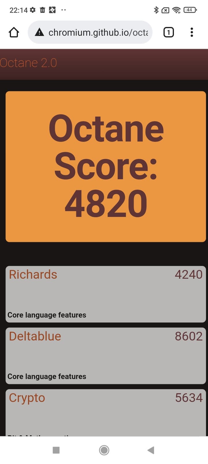 | Google Octane 2 (больше — лучше) | 4820 | 4947 | 12052 | 5352 | 5352 |