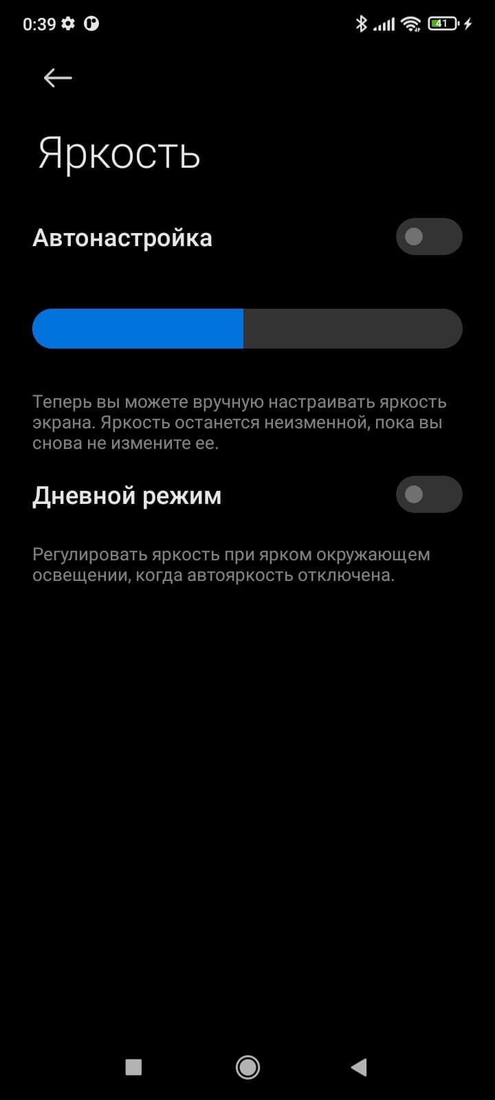 При выводе белого поля во весь экран и при ручном управлении яркостью ее максимальное значение составило всего 385 кд/м² в обычных условиях. До такого же значения яркость повышается на очень ярком свету независимо от значения настройки яркость при включенной опции Дневной режим.