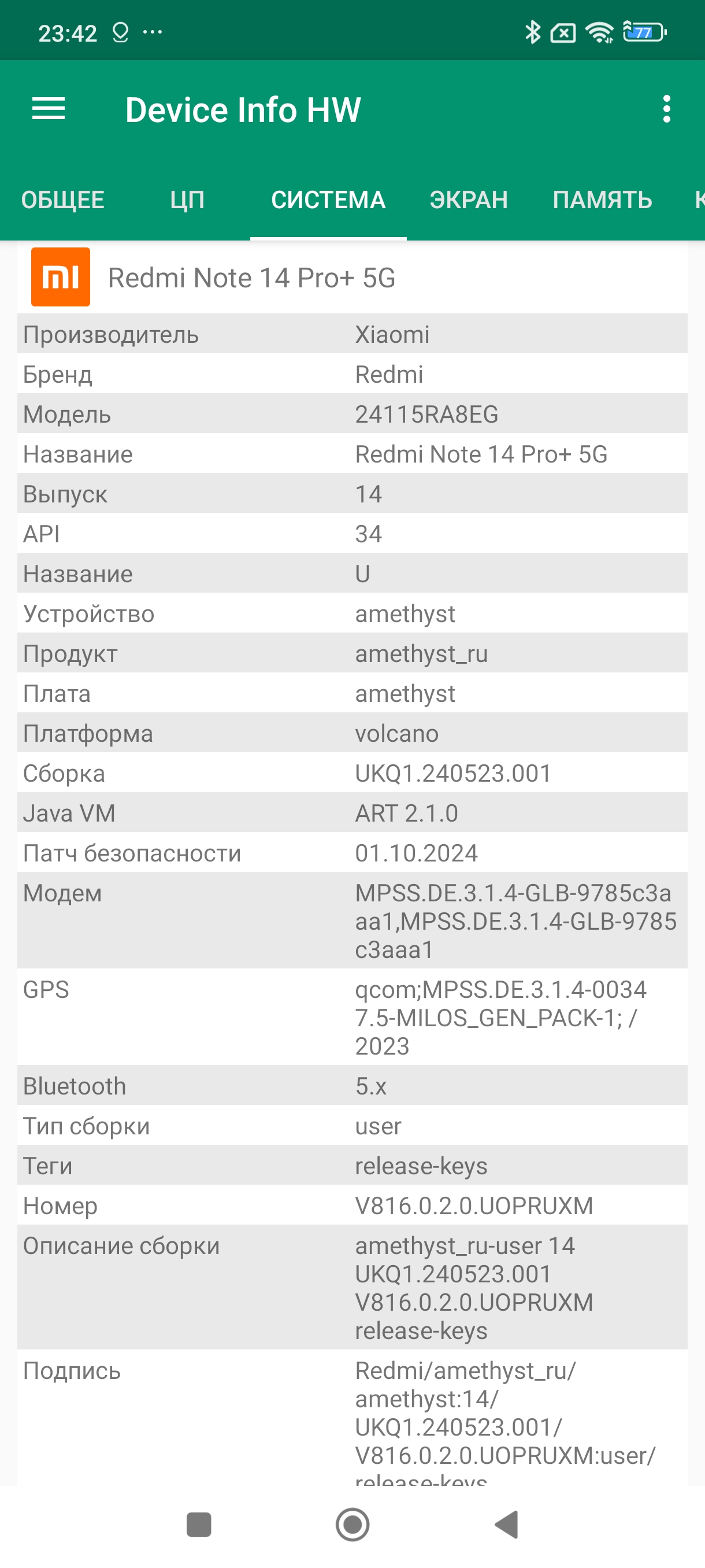 У смартфона Redmi Note 14 Pro+ следующие сетевые возможности: поддерживаются сети вплоть до 5G, два диапазона Wi-Fi 5 (2,4 и 5 ГГц) и Bluetooth 5.4, есть поддержка NFC. На практике в пределах городской черты московского региона аппарат демонстрирует уверенную работу в беспроводных сетях, не теряет связь, быстро восстанавливает связь после вынужденного обрыва. Все необходимые встроенные датчики, вплоть до гироскопа, на месте.