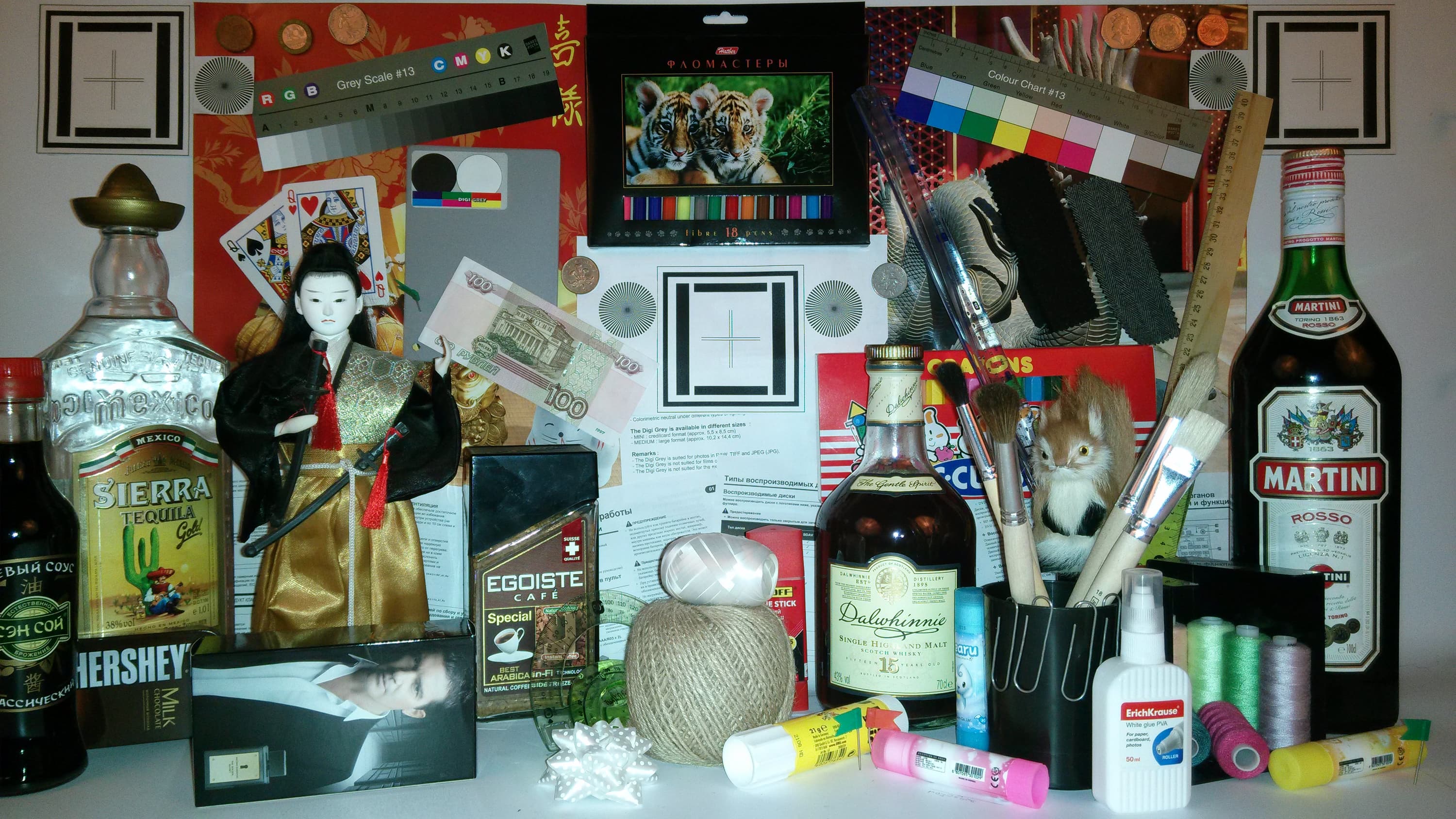 Первым делом мы решили проверить, насколько хорошо наши участники справляются с фотосъемкой при разном освещении, и оценить их умения в использовании вспышки. Для этого тестовый стенд снимался при шести разных типах освещения: