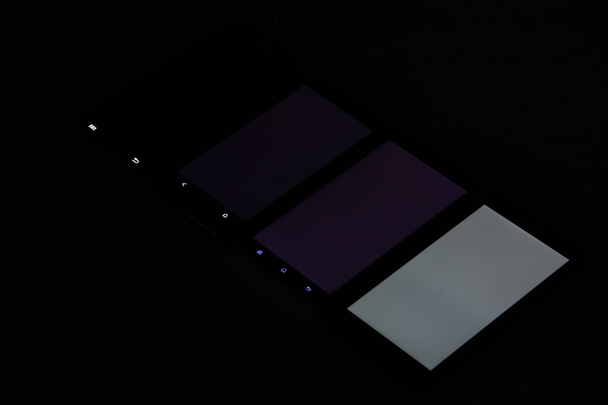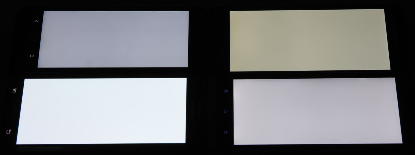 В следующих тестах, для наглядности и простоты сравнения участников, находящихся на одной фотографии, яркость подсветки всех смартфонов была установлена так, чтобы на белом поле во весь экран она равнялась примерно 100 кд/м², кроме того, для Samsung Galaxy S4 был выбран профиль Фильм, в котором цветопередача ближе к стандартной и динамическая подстройка яркости выражена в меньшей степени.