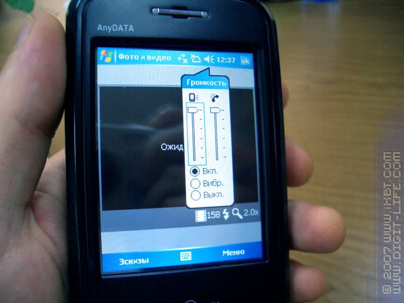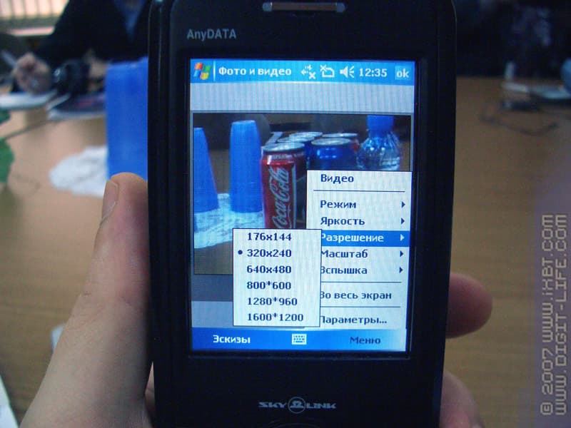 Реализациия камеры — к сожалению, ничего нового, все, как и на большинстве коммуникаторов на Windows Mobile. На прототипе еще пока нет никакой отлаженности работы, поэтому и качество снимков необсуждаемо, и некоторые моменты управления — тоже пока под вопросом. Например, не использующаяся боковая качель «Громкость», которая к тому же еще и не блокируется при включении камеры. И пока не очень понятно, как именно будет срабатывать автофокус, указанный в ТТХ. Несколько тестовых снимков были сделаны, но судить по ним вообще ни о чем нельзя. Только, пожалуй, о том, что доработка аппарата еще ведется. Тем более, что снимки были сделаны уже «устаревшим» образцом — об этом говорилось выше. К сожалению, времени было не воз и маленькая тележка, что-то переснять или переделать уже не было никакой возможности.