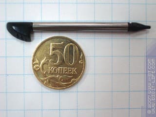 В результате — такая мелкокалиберность. Он очень коротенький. Впрочем, как и в случае с другими короткими стилусами, он имеет телескопическую конструкцию, которая позволяет увеличить его длину примерно в полтора раза.