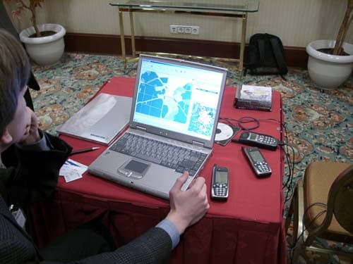 Компания «Гео Спектрум» представила две системы — GS Tracker и Geo Spectrum Benefon Mapping Suite. Первая программа предназначена для решения задач персонального трекинга (отслеживание местоположения, обмен текстовыми сообщениями). Эта система предполагает наличие телефона Benefon ESC! или Benefon Track на одном «конце провода» и любого сотового терминала, имеющего встроенный модем и подключенного с помощью кабеля к ПК — на другом. Компьютер необходим потому, что именно на его экране вы видите перемещения объекта на карте города. Любой владелец телефона Benefon может загрузить GS Tracker для ознакомления с его работой (в демо-режиме отслеживаются передвижения лишь одной точки).